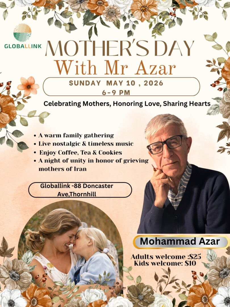 به مناسبت روز مادر، در کنار هموطنان عزیزمان در تورنتو گرد هم میآییم تا شبی سرشار از عشق، خاطره و همدلی را تجربه کنیم.